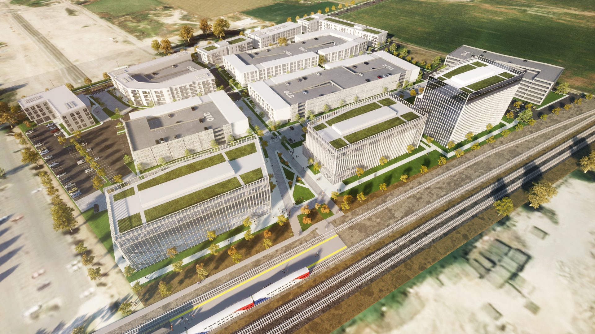 The mixed-use development at American Fork Station is uniquely located off the I-15 and 200 South. It features direct access to the American Fork Front Runner commuter rail service, making this site perfect for transit-oriented design. With amazing views of the Wasatch Front and quick access to downtown this community is primed to become the new sustainable center of activity for American Fork. It will contain over 500 apartment units, 60,000 sf of new retail, a 100-key hotel, and over 400,000 sf of office space. The office buildings will anchor the development and give architectural prominence along the Front Runner line. In addition to providing a strong design presence as seen from I-15, these office buildings will serve as a buffer for the residential units. A series of green spaces and plazas will then connect offices to residential buildings. These connections will be used as “wellness loops” to promote circulation and activity throughout the development. Events and activities will be promoted in shared plazas near the platform and neighboring sites to encourage joint activities and welcome additional visitors into this exciting new community.