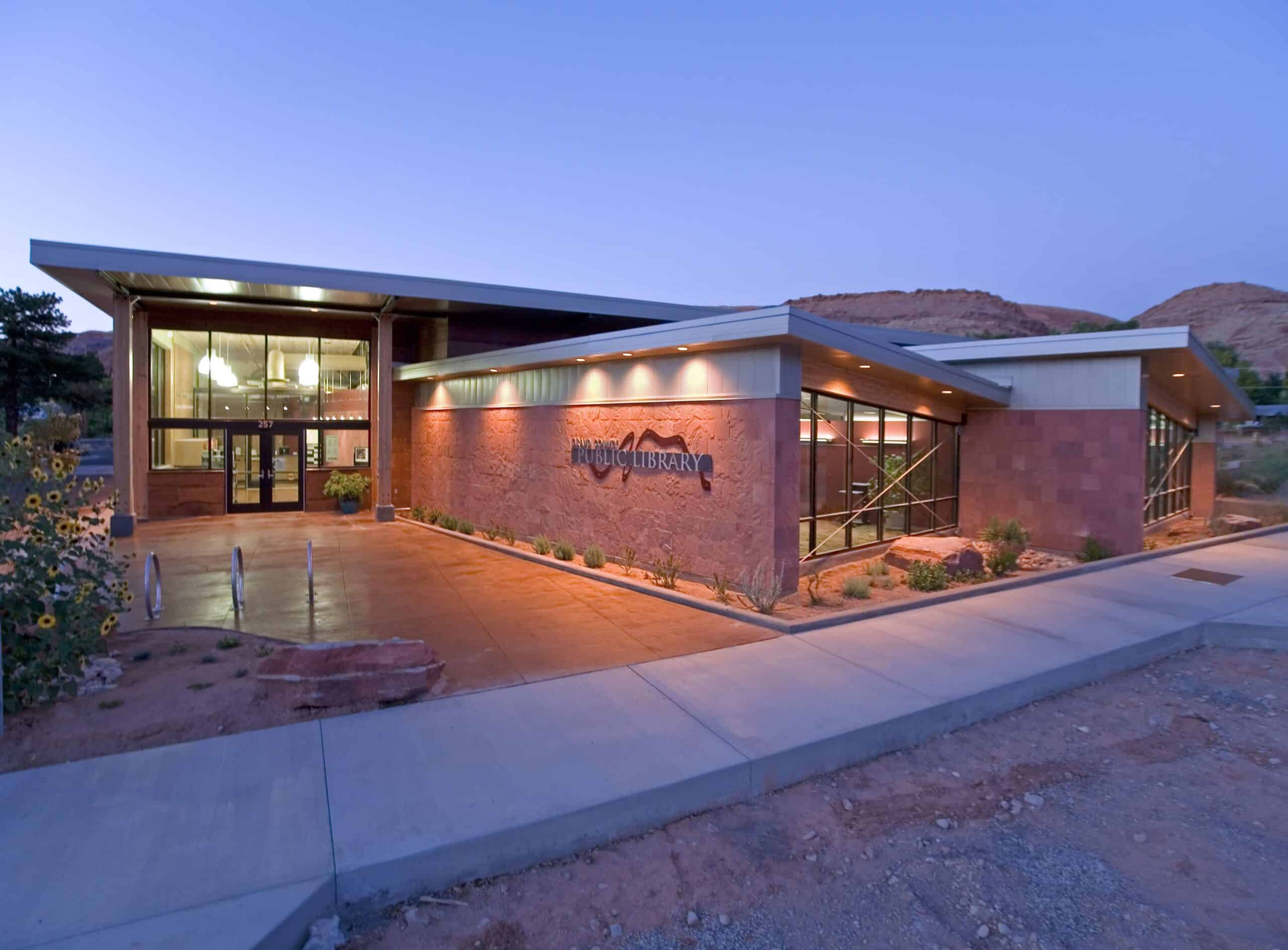 Located in the heart of Moab, Utah this library has become a well-loved gathering place for locals and thousands of tourists that visit every year. The 13,800 SF library includes a general collection, youth services, children’s library, teens’ library, computer lab, meeting rooms, and an outdoor courtyard. Through a focused vision by the Library Director and Board from the earliest stages of design, a commitment to designing a green building that respects its surroundings was key.