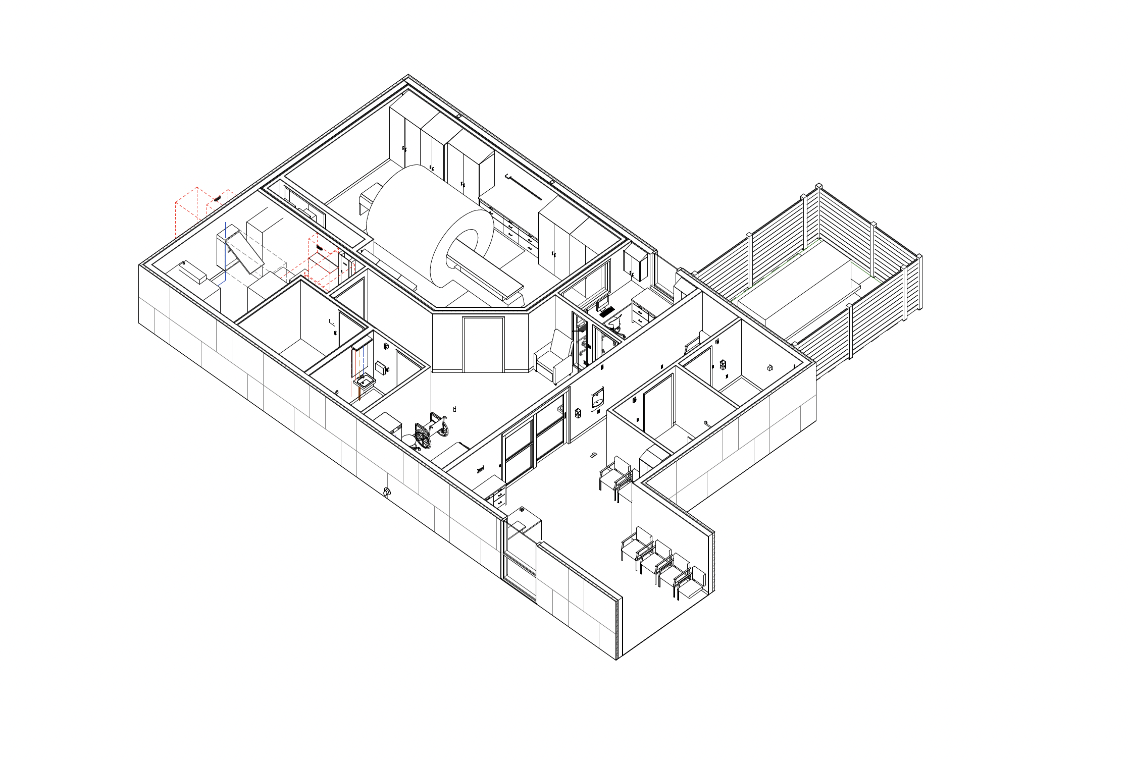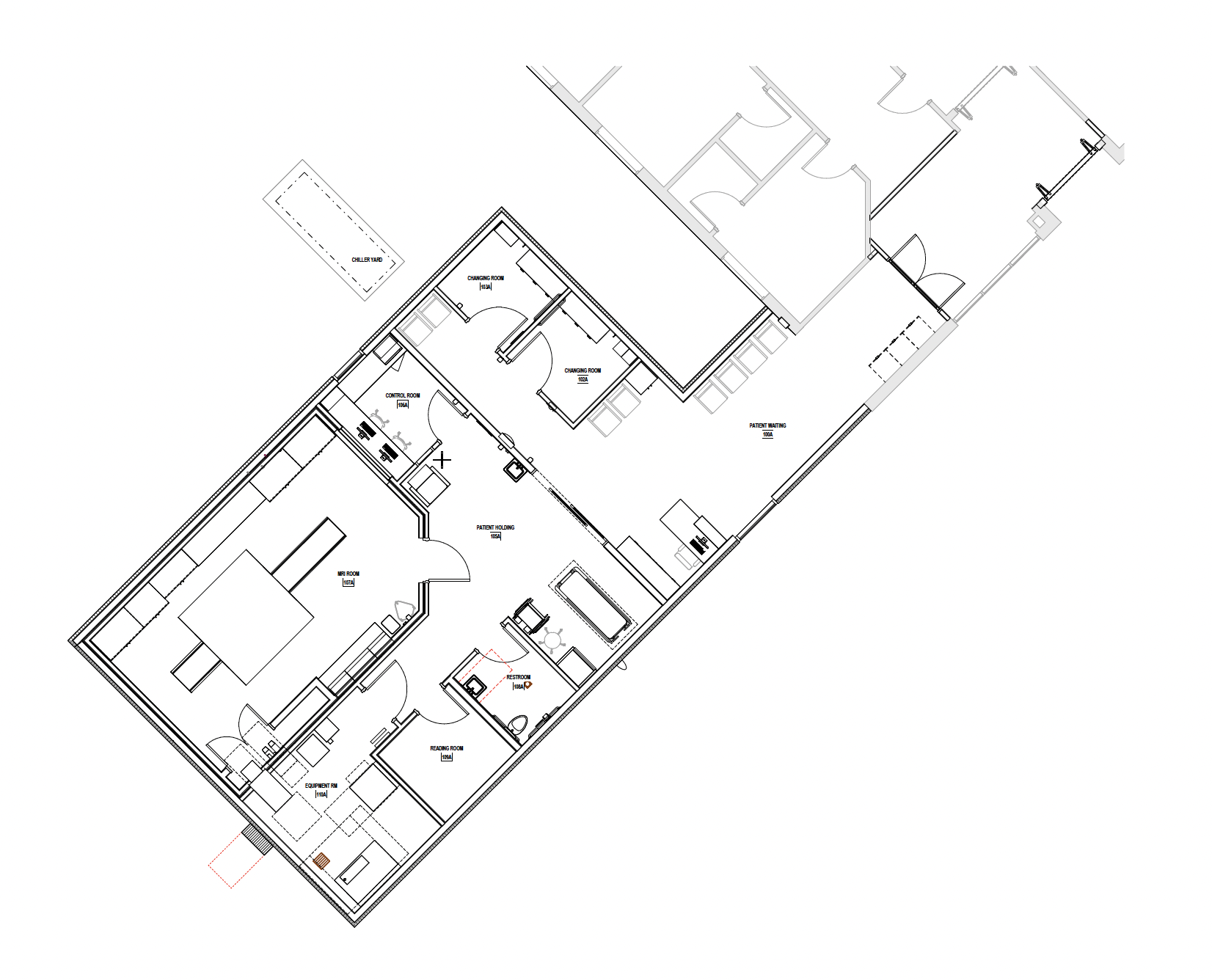 MRI Room, Control Room, Equipment Room, Patient prep/recovery, Designated MRI Zones 1-4, Accommodations for MRI Chiller outside of building, Reading Room, Other Services, Toilet Room, Dressing Room(s), Sub-Waiting, Connector corridor to existing building,